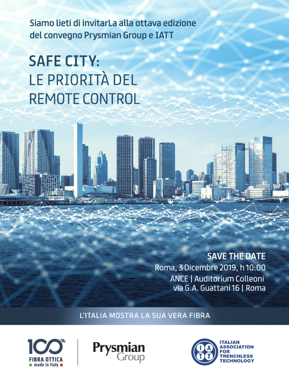 Si svolgerà martedì 3 dicembre alle ore 10.00 a Roma, presso la sede dell’Ance in via Guattani 16, l’ottava edizione del convegno Iatt-Prysmian Group “Safe city: le priorità del remote control”.