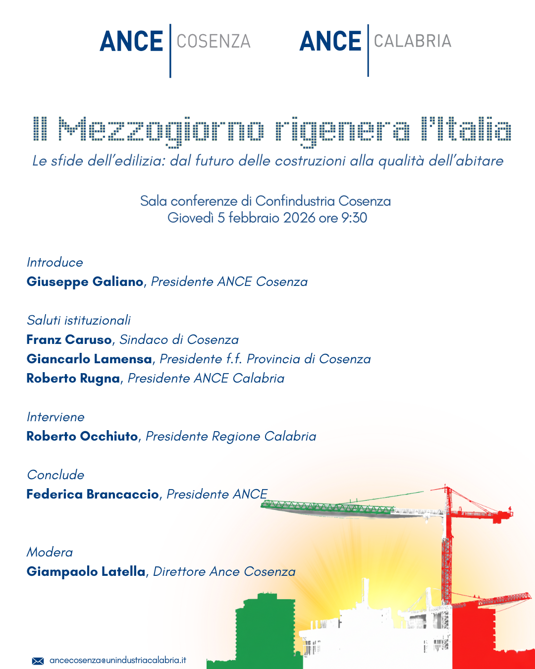 Ance Cosenza e Ance Calabria – Il Mezzogiorno rigenera l’Italia. Le sfide dell’edilizia: dal futuro delle costruzioni alla qualità dell’abitare